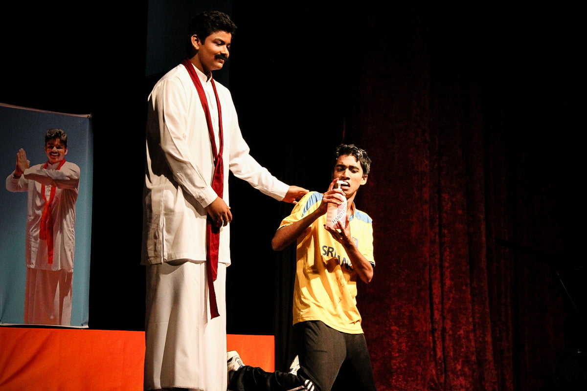 Conceived and directed by AnandaDrama’s creative team of Rajitha Hettiarachchi, Ishtartha Wellaboda and Nishantha de Silva, Alles in Wonderland was a biting, topical, political satire that took the Royal Drama Competition by storm, winning the Championship and People’s Choice Award, with Lithmal Jayawardhana winning the Award for Most Memorable Performance. Given inordinately high demand for a public showing, the play was staged at the Kularatne Hall of Ananda College on 14th June 2013.